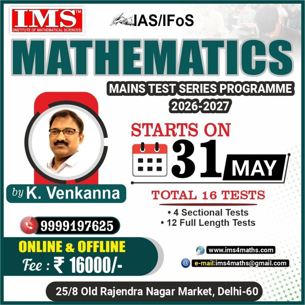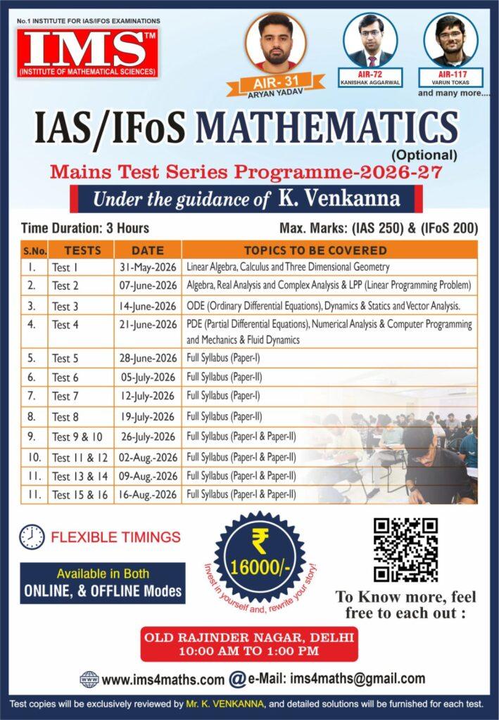 - Every Year IAS & IFoS Mathematics (Mains) Test Series will be conducted in December & June.